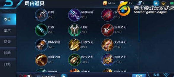 六神装:巨人之握、泣血之刃、影忍之足、暗影战斧、冰痕之握、无尽战刃。