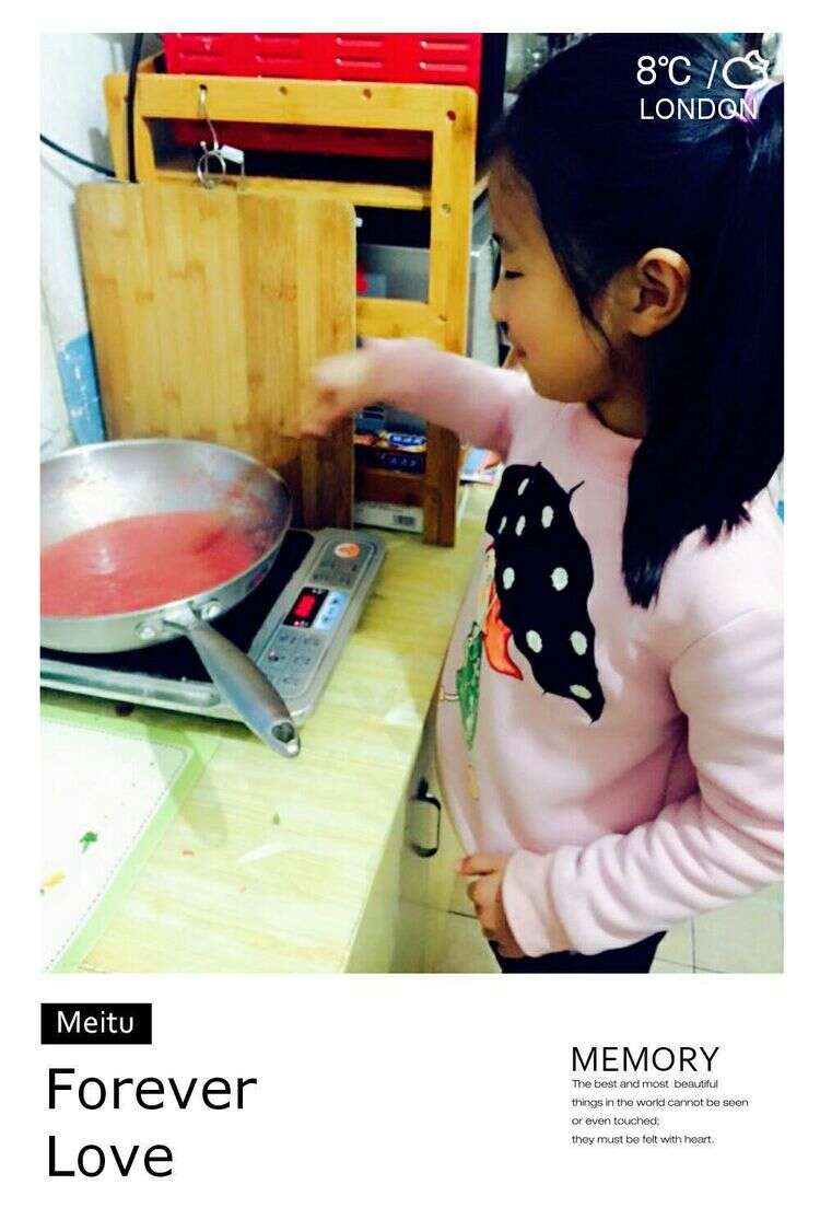 孩子将草莓自制成草莓酱