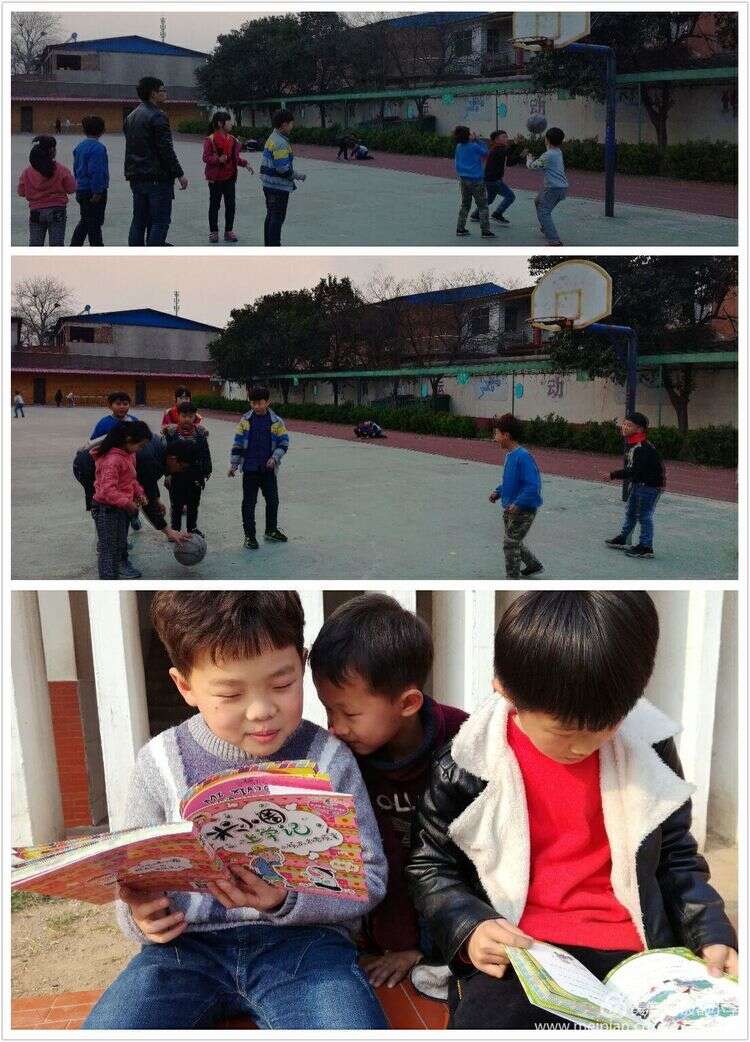 课间娱乐时间,孩子们和体育老师打篮球亦或自己看课外书,玩游戏 。