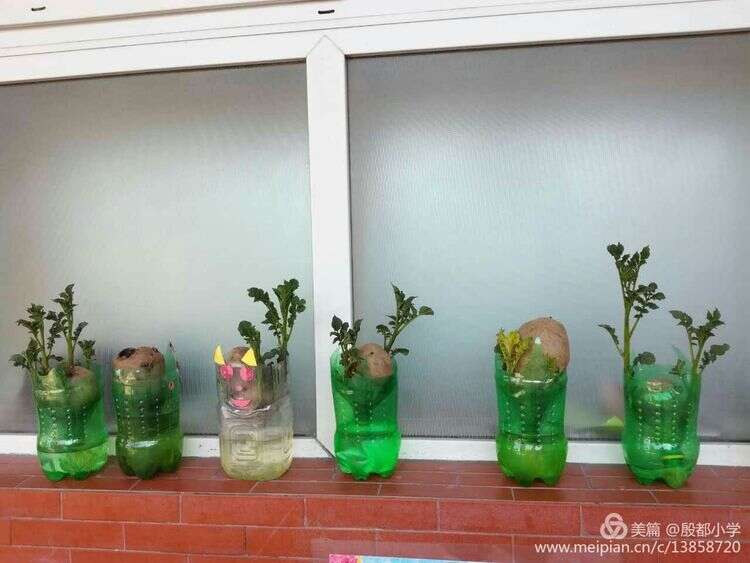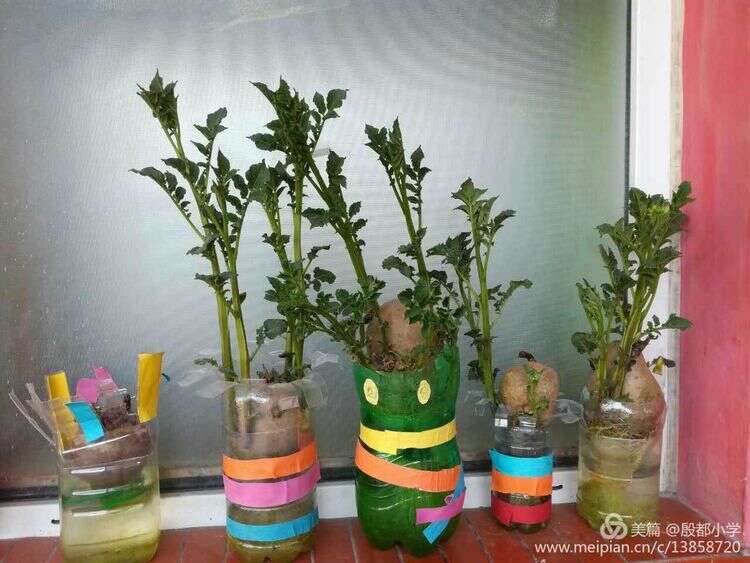 孩子们不仅给校园树木浇水,还亲手种植土豆,绿化环境。