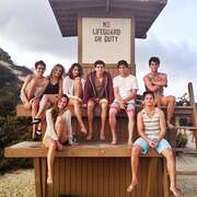 Eightclosefriendssoakuptheirlastdayofsummertogetheronthebeachbeforepartingwaysforcollege.