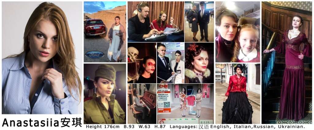 你好。我叫安琪。我是外籍演员和模特,住在上海。我会说汉语,英语,意大利语,俄语,乌克兰语。可以拍摄,拍照,做活动,猫步。我的身高176。