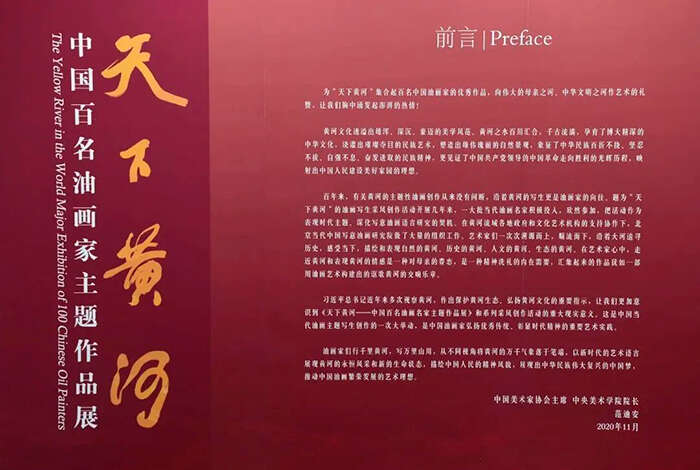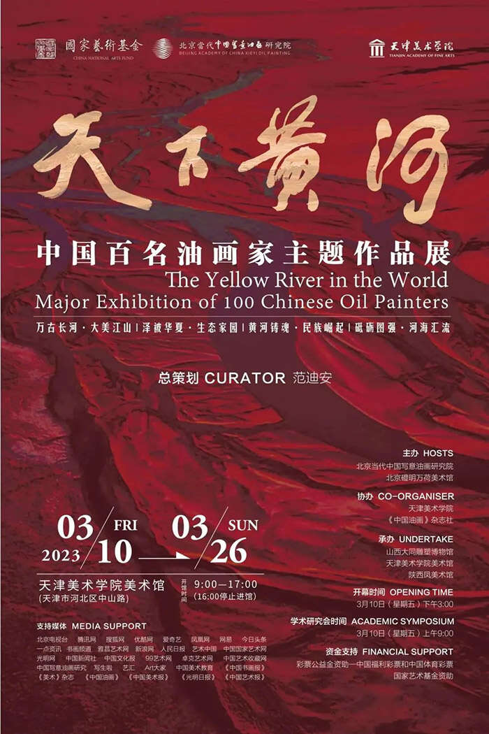 《天下黄河——中国百名油画家主题作品展》由北京当代中国写意油画研究院、北京磴明万荷美术馆主办;天津美术学院、《中国油画》杂志社协办;山西大同雕塑博物馆、天津美院美术馆、陕西凤美术馆承办;由中国福利彩票和中国体育彩票、国家艺术基金资助。展览由中央美术学院院长、中国美术家协会主席范迪安先生担任总策划,同时得到中国美术家协会原党组书记、中国美术家协会副主席徐里先生的大力支持。
