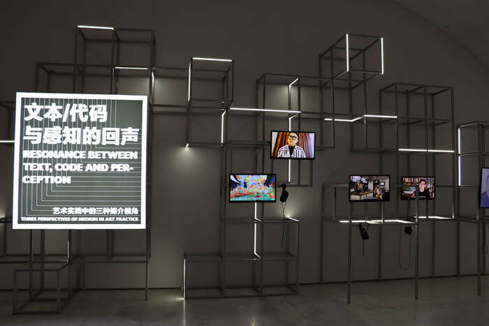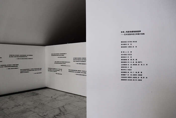 本次展览以高文谦、耿雪、蒲英玮、邱宇、王郁洋和武子杨六位艺术家为研究样本。每位/组艺术家的作品涉及不同媒介的思考和表达维度,这种多重性折射出当今时代艺术创作经验的复杂多样状态。在展览中,艺术家从媒介工作方法的角度出发,利用文本、图像、影像等视觉特性构建了一个综合体验的展览空间场域。观众可以通过观察艺术家如何从不同媒介特性出发完成各自的感知经验表达,以此描绘出一个思想现场的图景。