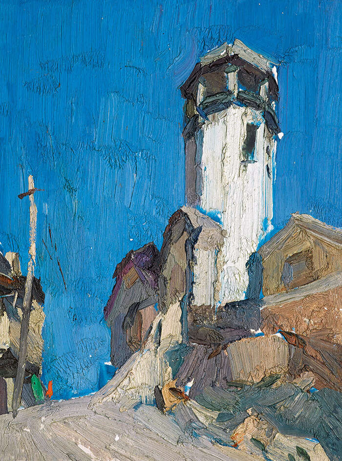 《青岛望火楼》 谌北新 纸板油画 31×23cm 1979年