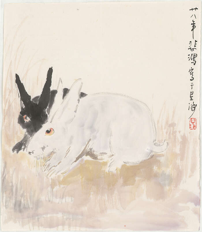 十二生肖兔 徐悲鸿 纸本彩墨 29.3×25.5cm 1939年 私人收藏