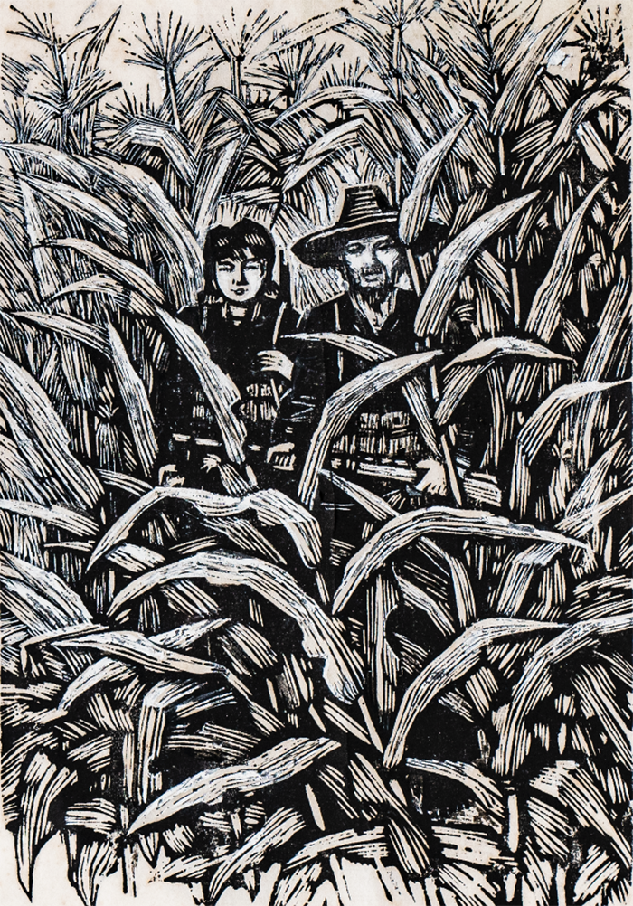 青纱帐里 谢梓文 黑白木刻 24×14cm 1943年 四川美术学院美术馆藏