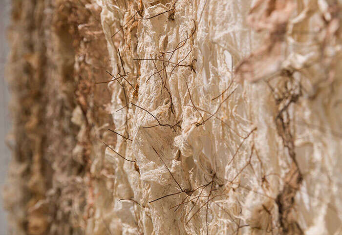Q:对综合材料作品来说,色彩的表达可能要排在材料语言的运用和表现力之后,您惯常使用植物染料为材料、作品染色,就色彩的表达和处理上,您秉承怎样的理念?