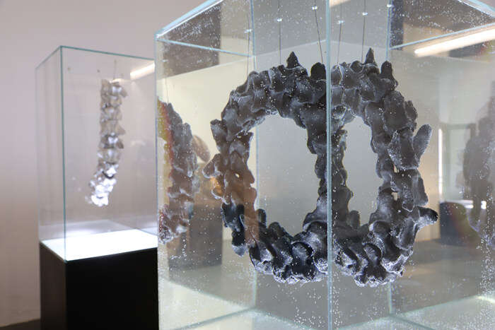 以大漆髹饰化石、甚至制作状如生物骨骼的庞大雕塑,孙文佳在他的作品中以大漆为媒介,将物质循环的过程、动植物生命连接的可能,重塑、展现在了他的创作之中。