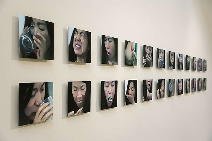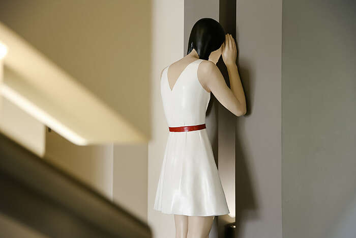 这次展览策展人魏星将两位艺术家的作品在空间里或并置或穿插展示,形成一场作品在物理空间上对话,更生成在精神领域的碰撞。有一种无声的交流,静默的较量,暗自的共情和感知的共享。作品中各种的凝视和眼光,以及隐藏的暗线和缠绕,交织成了一个充满隐喻的场域。而她们的作品有一个共性,就是都从身体出发,从自身的主体性与他者、与世界的关系出发去建构她们的艺术创作。