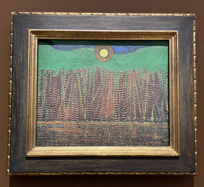 穆勒画下《日落:枫丹白露》是在1900年,崭新的世纪开始。进入19世纪以后,艺术家在对太阳的描绘中探索自己的感知,就像弗里德里希所做的那样。当20世纪来临,艺术家借由太阳开始进行更深(放)层(飞)的精神表达,颜色使用也越来越自由大胆。