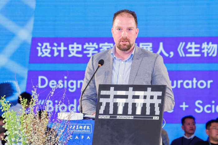《生物设计》作者、设计史学者、策展人威廉 ·迈尔斯(William Miles)从其著作中收录的新兴生物设计案例作为演讲的开始,他以举例子的方式向大家介绍了生物学设计的概念,即生命物质的创造形式,生物学设计优先考虑为其他物种制造空间或改善环境。