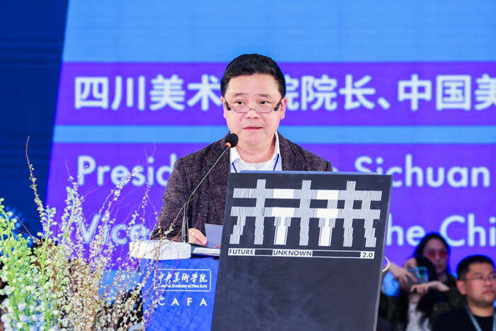 四川美术学院院长、中国美术家协会副主席庞茂琨主要围绕“艺术设计驱动乡村振兴”与“艺术科技”为主题展开谈论。