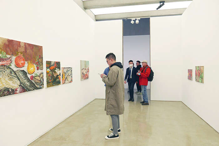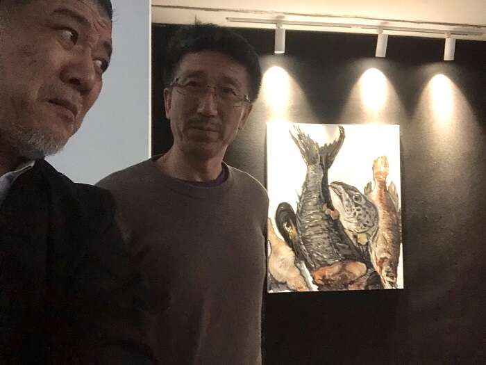 倪军:这是我上次2021年7月在偏锋画廊展览之后的一个新的个展。和千千万万的人一样,我们都经历了三年的百年不遇的历史,所以这个展览对于我个人来讲是很特殊的,包含内心经历了很大的波澜之后的作品。今天这一批作品有在纽约画的,有在上海、天津、北京画的,还有在青岛、桂林画的,所以我是在不同的地方画画,在不同地方画的同样一个主题,比如说鱼。这些作品被策展人和画廊的王新友先生摆在一起成为一个系列,我个人觉得很有意思,这也是由策展人来解读一个展览最让人兴奋的地方。