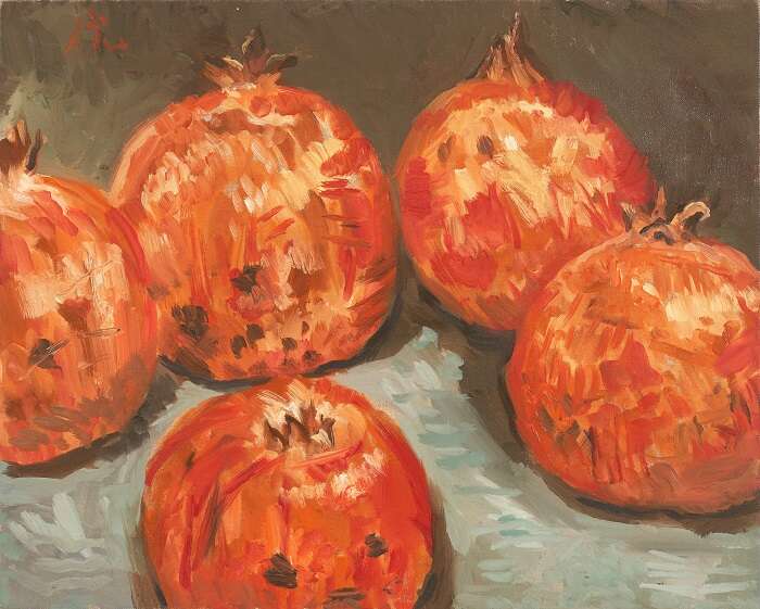 倪军 天津石榴 2022 布面油画 30 × 24 cm