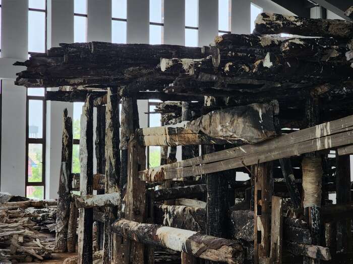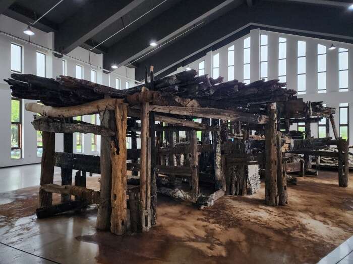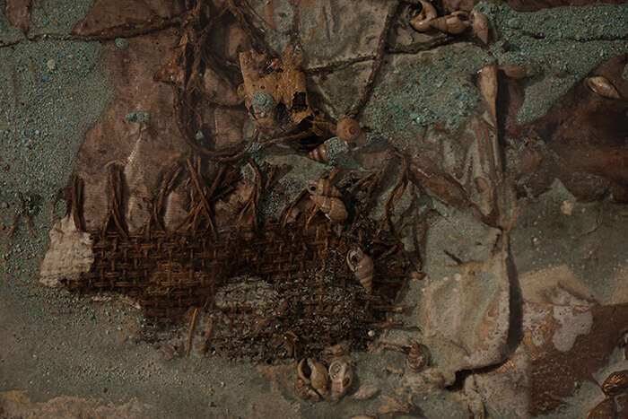 20位艺术家分别是胡伟、刘元、胡毅、秦仁强、黄秋实、黄三胜、汪三林、吴震、颜景亮、林向军、徐海军、张晨风、于洋、魏惠东、方志勇、陈翔宇、汪晟、王云曲、方达成、张慧亮。与大多数展览不同,本次展览的很多作品都在展览现场根据展览空间进行重新调整创作,甚至是在现场创作完成的。如胡伟先生创作的长19米、宽16米、高4.2米的作品《航迹》就是在博物馆展厅里,历时2周,现场创作而成。这件作品包含旧木、焚木、竹、金属、麻布、宣纸、皮纸、金银箔、海洋化石粉末、矿物·植物土质颜料等多种元素,以沉船的意象,表达出海上丝绸之路的历史沧桑。