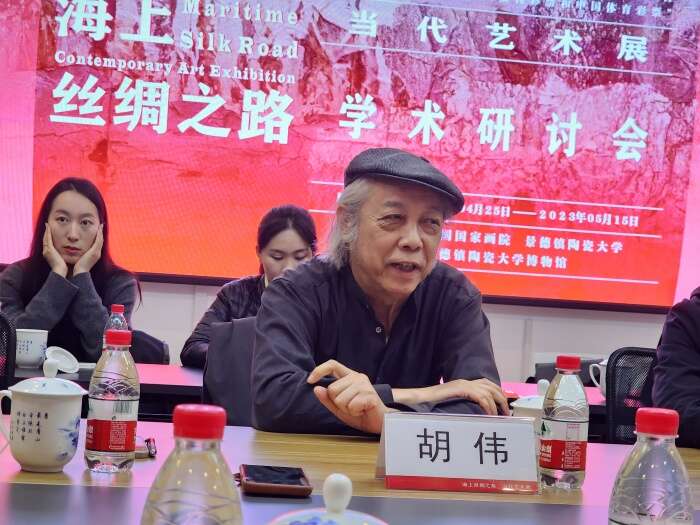 中国美术家协会综合材料绘画与美术作品保存修复艺委会主任、中国国家画院研究员、“‘海上丝绸之路’当代艺术展”项目负责人胡伟发言
