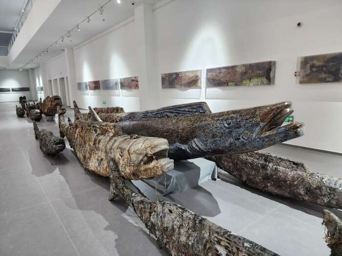 景德镇陶瓷大学博物馆是建筑面积超过3万平米的当代性专业美术博物馆,这个展览也是博物馆开馆后承办的第二个国家级展览。作品分别陈列于五个相互关联的大型空间中,不仅形态多样,而且在主题的引导下根据美术馆的空间结构策划展陈,与美术馆的当代性展示环境共同构建了一个体量庞大的当代艺术场,为“海上丝绸之路”这个文化底蕴深厚的历史主题赋予了当代的视觉能量。