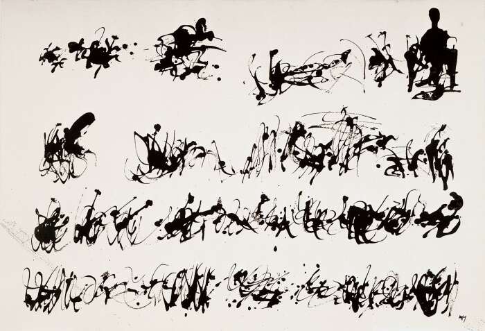 亨利·米肖,水墨画,1959年,纸上水墨,71.2 × 104.3 厘米 ©巴黎,蓬皮杜中心,法国国家现代艺术博物馆-工业设计中心