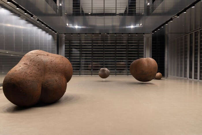 展览收幕于5号展厅的四件“扩张系列”作品,源自艺术家对于重塑皮肤边界的痴迷。《身体》(1991/93)、《水果》(1991/93)、《大地》(1991/93)、《最终产品》(1990/93)四件作品通过将躯体皮肤向外扩张形成如葛姆雷所说的“封闭爆炸”。在这个过程中,作品不再是只关于人体,而是与古生菌、早期的细胞生命、水果甚至蔬菜有所关联。《大地》与《最终产品》受制于重力、居于地面;而《身体》和《水果》则悬在空中、游离于地表之上,被细长且垂直的钢缆悬挂于天顶。空间之中充满活力。