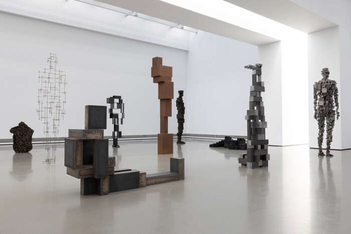 展览“有生之时”激活了西海美术馆两个迥异的空间——4号和5号展厅。35件雕塑在4号展厅以网格的形式展出,以呼应空间的封闭性。展览中将呈现艺术家风格多样的作品,包括早期的《高原》(1985-86)和《隔膜》(1995),它们表面被横轴和纵轴所切分;也有以不锈钢和铁为材料的作品,用相似的轴线布局身体内部的空间。艺术家的标志性作品《聚集I》标志着葛姆雷首次尝试将“像素化”的躯体转变为实体化的存在;《意义III》运用彼此相交的钢条网格绘制出身体的内部空间;《珍藏II》参考史前巨石,将人体结构视为不稳定的石板结构。