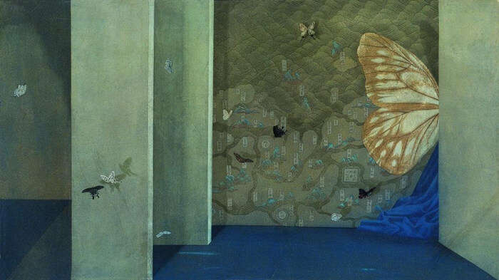 蝴蝶是徐累作品中的重要意象。艺术家认为蝴蝶这一生物存在着“变化”的深刻意义,同一个生命体,经过变化,从幼虫破茧成蝶。通过蝴蝶的振翅,我们被艺术家引入这一不断变化的、充满可能性的网络,与不同的生命个体、不同的记忆历程相遇。