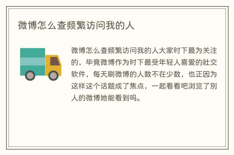 微博怎么查频繁访问我的人大家时下最为关注的,毕竟微博作为时下最受年轻人喜爱的社交软件,每天刷微博的人数不在少数,也正因为这样这个话题成了焦点,一起看看吧浏览了别人的微博她能看到吗。