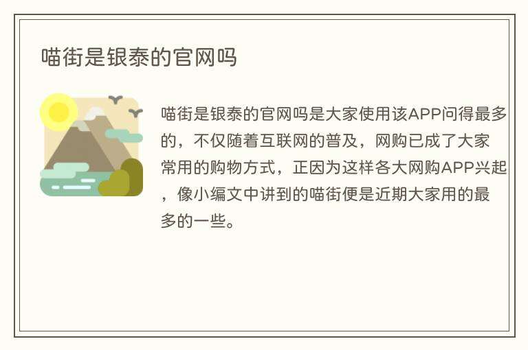 喵街是银泰的官网吗是大家使用该APP问得最多的,不仅随着互联网的普及,网购已成了大家常用的购物方式,正因为这样各大网购APP兴起,像小编文中讲到的喵街便是近期大家用的最多的一些。