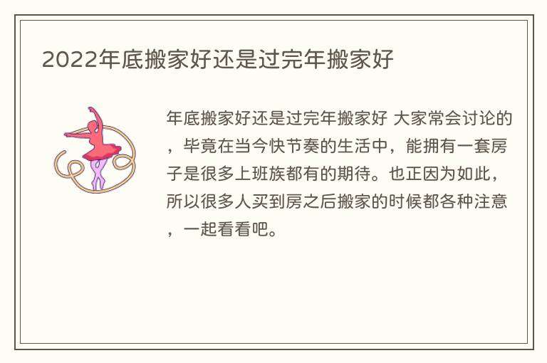 2022年底搬家好还是过完年搬家好
