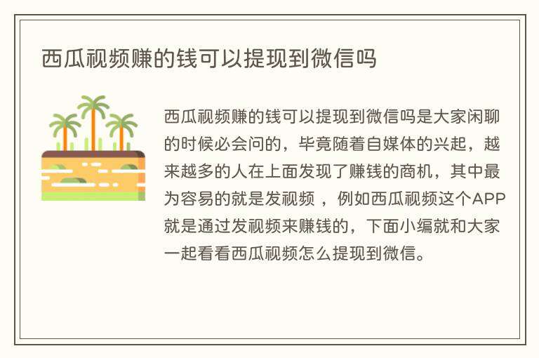 西瓜视频赚的钱可以提现到微信。