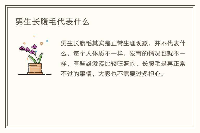 男生长腹毛其实是正常生理现象,并不代表什么,每个人体质不一样,发育的情况也就不一样,有些雄激素比较旺盛的,长腹毛是再正常不过的事情,大家也不需要过多担心。
