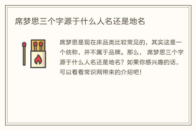 席梦思是现在床品类比较常见的,其实这是一个统称,并不属于品牌。那么, 席梦思三个字源于什么人名还是地名?如果你感兴趣的话,可以看看常识网带来的介绍吧!