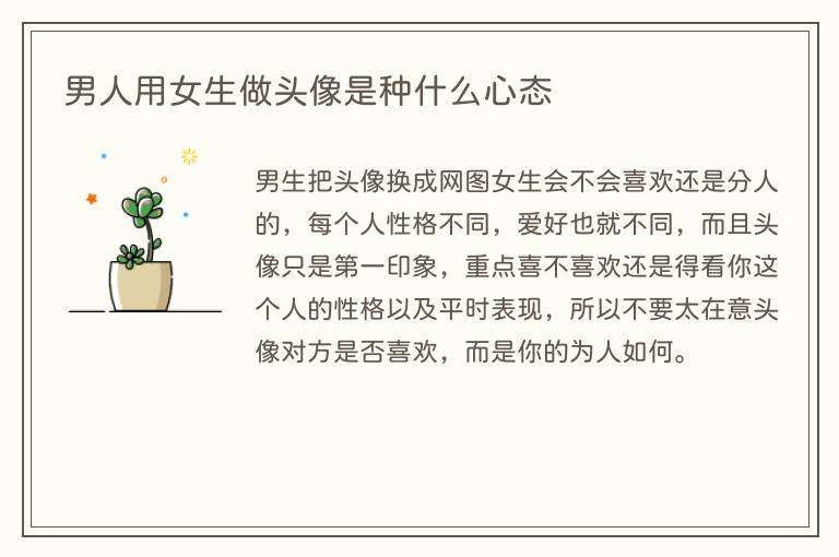 1、一个男生用女生的头像,可能只是单纯的觉得女孩子的头像好看,个人审美爱好,所以就用了女生的头像。