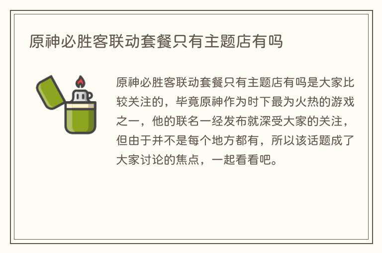 原神必胜客联动套餐只有主题店有吗是大家比较关注的,毕竟原神作为时下最为火热的游戏之一,他的联名一经发布就深受大家的关注,但由于并不是每个地方都有,所以该话题成了大家讨论的焦点,一起看看吧。