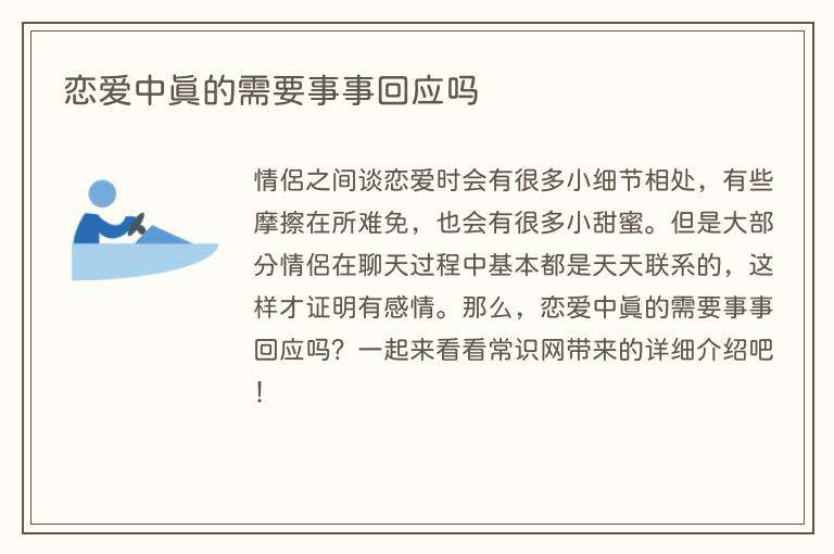 情侣之间谈恋爱时会有很多小细节相处,有些摩擦在所难免,也会有很多小甜蜜。但是大部分情侣在聊天过程中基本都是天天联系的,这样才证明有感情。那么,恋爱中真的需要事事回应吗?一起来看看常识网带来的详细介绍吧!