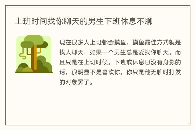 现在很多人上班都会摸鱼,摸鱼最佳方式就是找人聊天,如果一个男生总是爱找你聊天,而且只是在上班时候,下班或休息日没有身影的话,很明显不是喜欢你,你只是他无聊时打发的对象罢了。