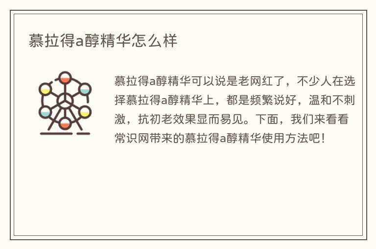 慕拉得a醇精华可以说是老网红了,不少人在选择慕拉得a醇精华上,都是频繁说好,温和不刺激,抗初老效果显而易见。下面,我们来看看常识网带来的慕拉得a醇精华使用方法吧!