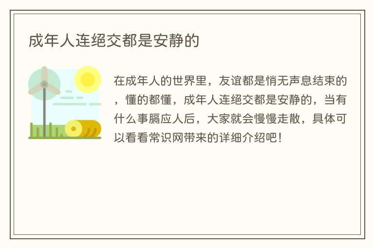 在成年人的世界里,友谊都是悄无声息结束的,懂的都懂,成年人连绝交都是安静的,当有什么事膈应人后,大家就会慢慢走散,具体可以看看常识网带来的详细介绍吧!
