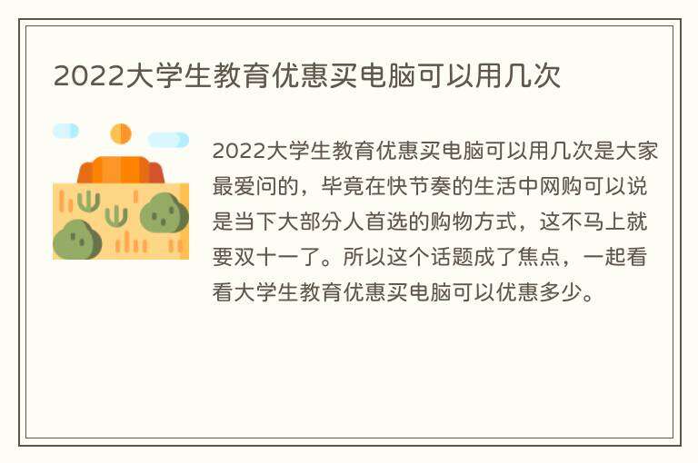 2022大学生教育优惠买电脑可以用几次是大家最爱问的,毕竟在快节奏的生活中网购可以说是当下大部分人首选的购物方式,这不马上就要双十一了。所以这个话题成了焦点,一起看看大学生教育优惠买电脑可以优惠多少。