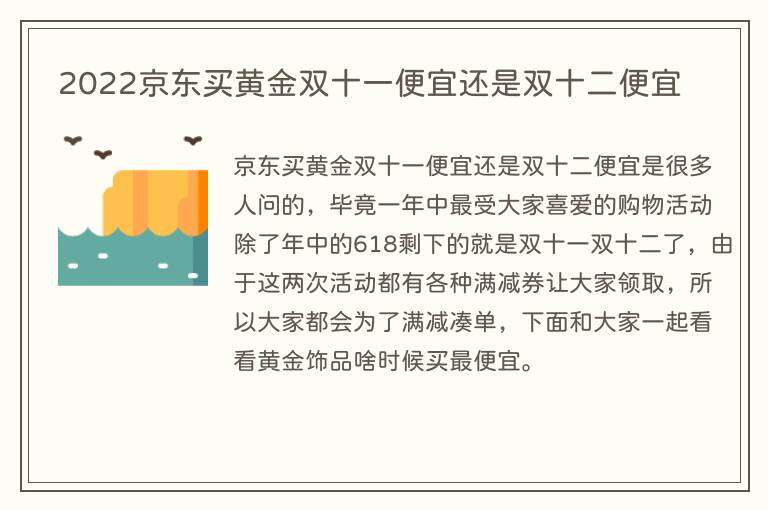 京东买黄金双十一便宜还是双十二便宜是很多人问的,毕竟一年中最受大家喜爱的购物活动除了年中的618剩下的就是双十一双十二了,由于这两次活动都有各种满减券让大家领取,所以大家都会为了满减凑单,下面和大家一起看看黄金饰品啥时候买最便宜。