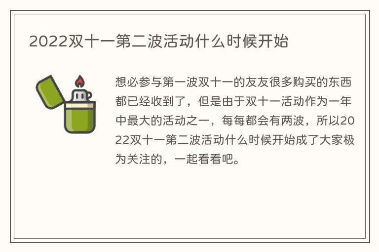 想必参与第一波双十一的友友很多购买的东西都已经收到了,但是由于双十一活动作为一年中最大的活动之一,每每都会有两波,所以2022双十一第二波活动什么时候开始成了大家极为关注的,一起看看吧。