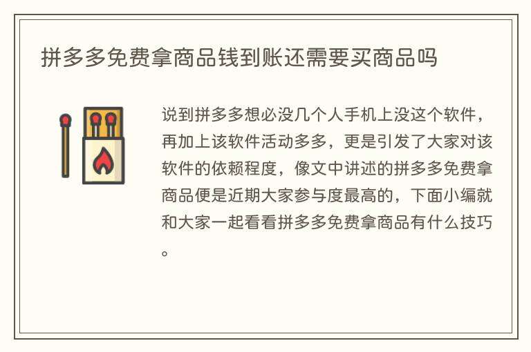 拼多多免费拿商品钱到账还需要买商品吗