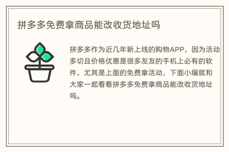 拼多多免费拿商品能改收货地址吗
