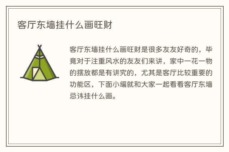 客厅东墙挂什么画旺财是很多友友好奇的,毕竟对于注重风水的友友们来讲,家中一花一物的摆放都是有讲究的,尤其是客厅比较重要的功能区,下面小编就和大家一起看看客厅东墙忌讳挂什么画。