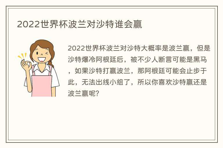 2022世界杯波兰对沙特大概率是波兰赢,但是沙特爆冷阿根廷后,被不少人断言可能是黑马,如果沙特打赢波兰,那阿根廷可能会止步于此,无法出线小组了,所以你喜欢沙特赢还是波兰赢呢?