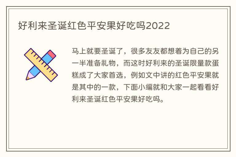 马上就要圣诞了,很多友友都想着为自己的另一半准备礼物,而这时好利来的圣诞限量款蛋糕成了大家首选,例如文中讲的红色平安果就是其中的一款,下面小编就和大家一起看看好利来圣诞红色平安果好吃吗。