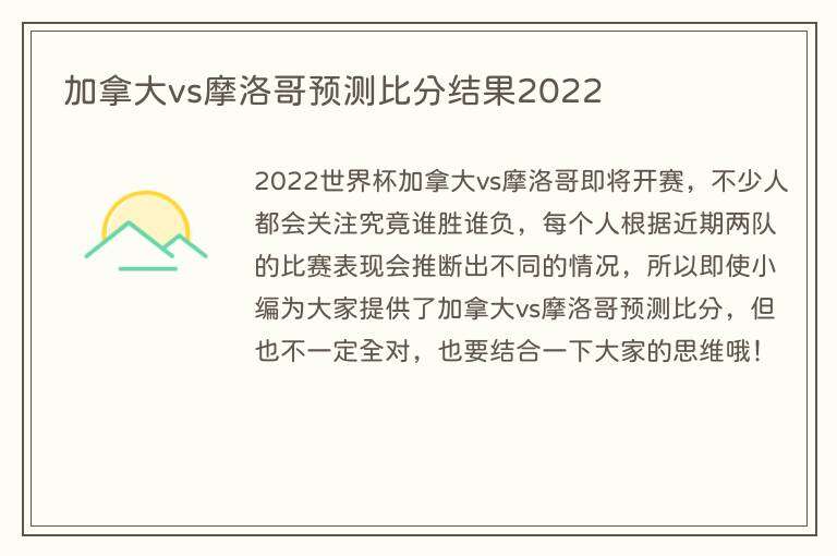 2022世界杯加拿大vs摩洛哥即将开赛,不少人都会关注究竟谁胜谁负,每个人根据近期两队的比赛表现会推断出不同的情况,所以即使小编为大家提供了加拿大vs摩洛哥预测比分,但也不一定全对,也要结合一下大家的思维哦!