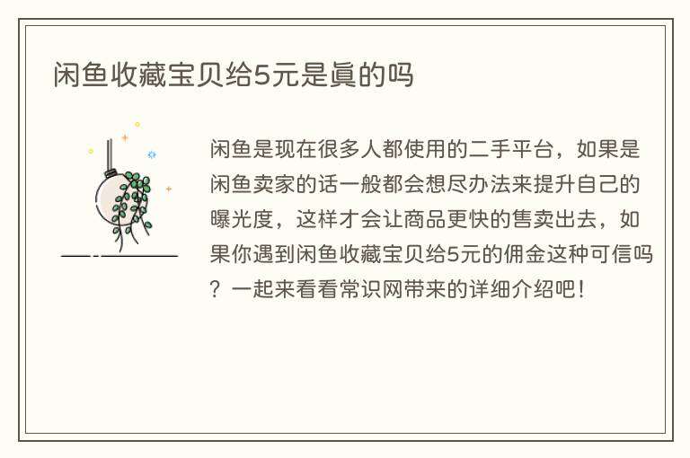 闲鱼收藏宝贝给5元是真的吗