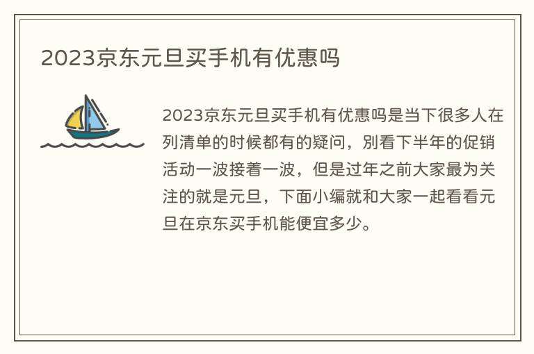 2023京东元旦买手机有优惠吗是当下很多人在列清单的时候都有的疑问,别看下半年的促销活动一波接着一波,但是过年之前大家最为关注的就是元旦,下面小编就和大家一起看看元旦在京东买手机能便宜多少。