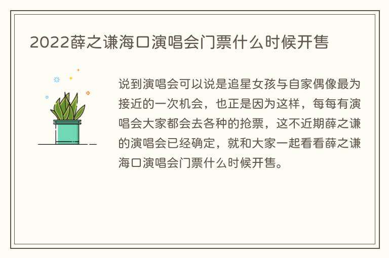 说到演唱会可以说是追星女孩与自家偶像最为接近的一次机会,也正是因为这样,每每有演唱会大家都会去各种的抢票,这不近期薛之谦的演唱会已经确定,就和大家一起看看薛之谦海口演唱会门票什么时候开售。